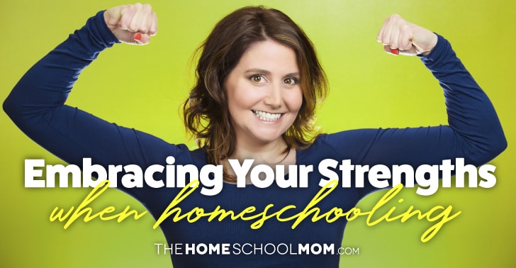 Image of woman flexing biceps with text Embracing Your Strengths When homeschooling TheHomeSchoolMom